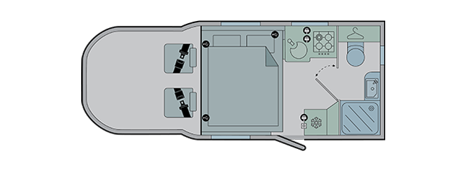 - Front Flexi-lounge featuring twin Aguti convertible travelling seats incorporating ISOFIX with dedicated travel seat cushions (model specific)