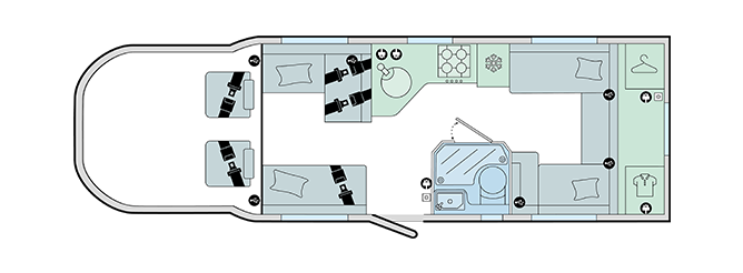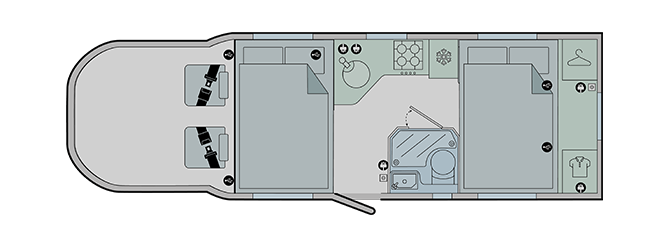 - Parallel rear lounge, convertible into an additional double bed (optional upgrade)