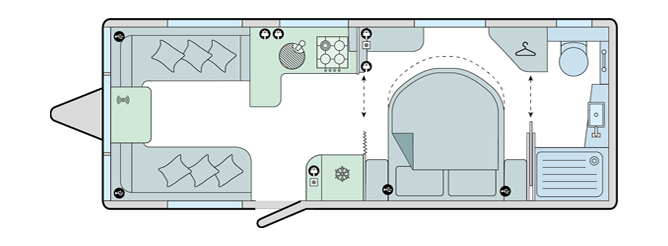 - Large front lounge converts to twin singles or a double bed, available in three fabric options