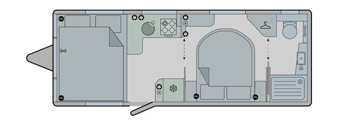 - Up to two TV stations with a TV bracket, wall mounts, 230v, 12v and aerial sockets