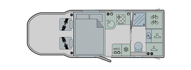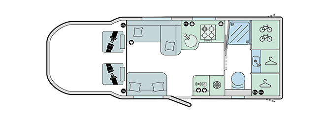 - Front lounge with twin dedicated rear travel seats, including 3-point seatbelts and up to three ISOFIX fitting (model specific)