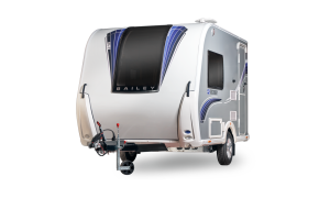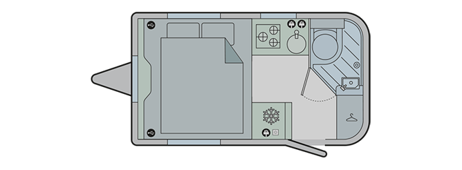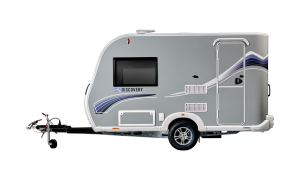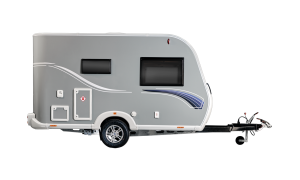 - Compact single axle, 7’3” wide model for 2 people with parallel seat front lounge