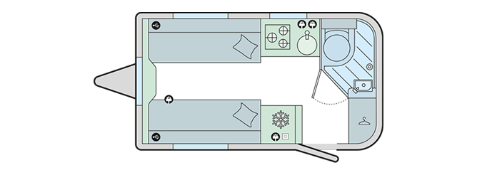- Front lounge converts to twin singles or a double bed, available in one fabric option