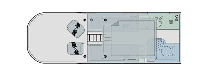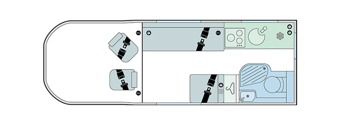 - Front flexi lounge with twin Aguti travel seats including 3-point seatbelts and two ISOFIX fittings