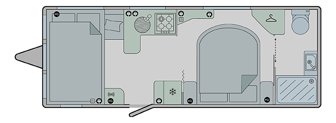 - Up to two TV stations with 230v, 12v and aerial sockets (model specific)